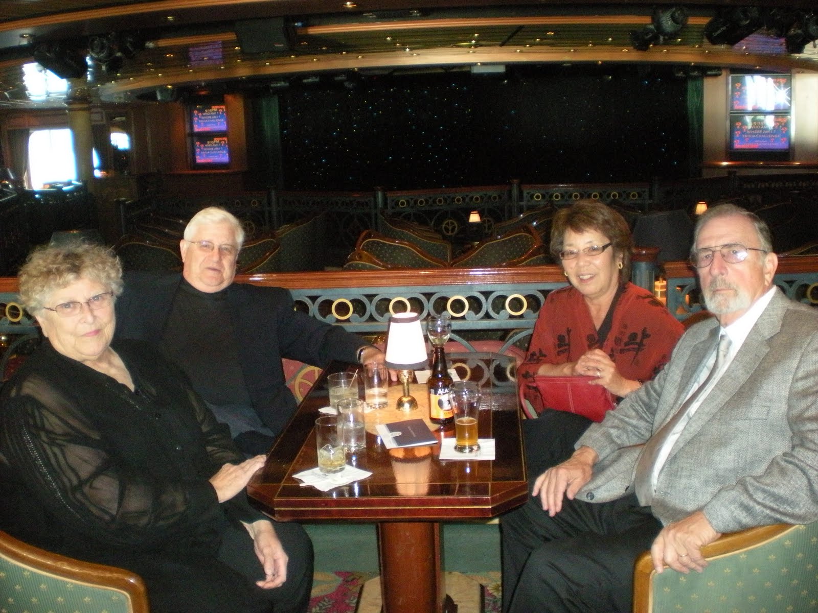 Evening is formal and starts with the Captain’s circle. Drinks were complimentary - gimlets and fruit punch. Bill and Jan had something green. Dinner was at a table for ten because of the rush. Afterwards Bill went to Avatar, Nancy and Jan to the casino and Dick to bed (10:00) Tylenol PM did nothing but the Simply Sleep did the trick!